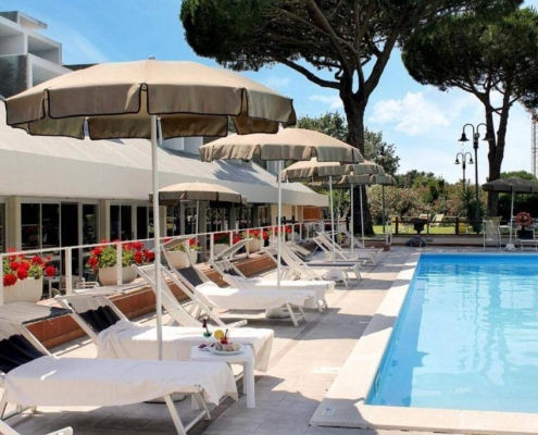Affacciato sulla pineta, regala una vista incantevole e un’atmosfera rilassante, ideale per una vacanza all’insegna del relax e del divertimento in Versilia.